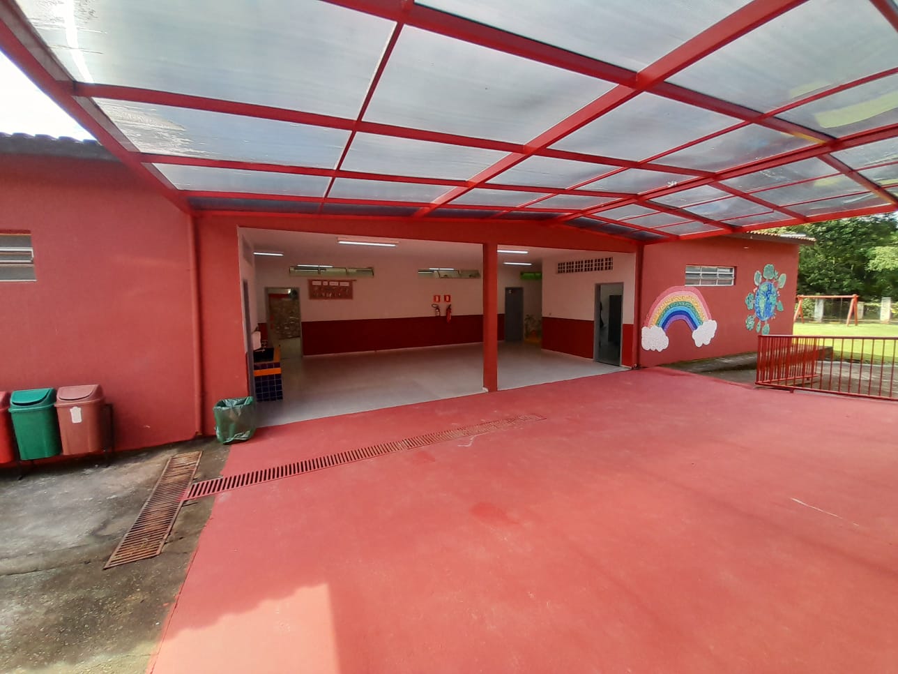 A revitalização contemplou uma ampla reforma estrutural, com pintura interna e externa, substituição de pisos danificados, nova identificação visual, além da instalação de cobertura em policarbonato, proporcionando mais conforto e segurança. Os ambientes também foram pensados para acolher e estimular os alunos, com salas e refeitório recebendo adesivação temática.